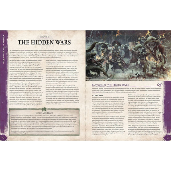 • Detailed information on the factions at play, including the history of the Hidden Wars, and a guide to the frontier town of Laurium, which serves as an ideal place for heroic PCs of all backgrounds to assemble.