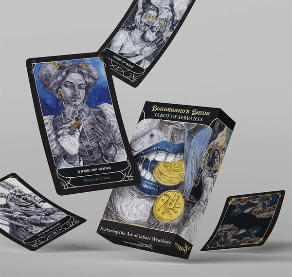 The Tarot of Servants is a fully illustrated dark-occult tarot that features horrors from Bluebeard’s mansion. This 84 card deck twists the traditional Rider Waite tarot and expands what is possible with several alternate Major Arcana from the Deck of Thoth.
