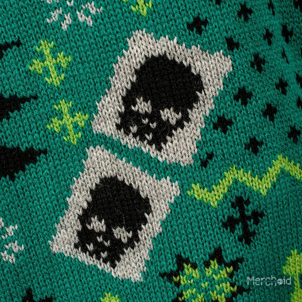 Prepare to purge heresy from your wardrobe this Yuletide with the Warhammer 40,000: Dark Angels Christmas Sweater! Cloaked in the sacred hues of Caliban Green, Chapter Beige, and Heretic Red, this sweater is a tribute to the most secretive (and stylish) Space Marine Chapter. The Dark Angels faction logo reigns supreme on the front, while patterns of the Chapter icon and a menacing replica of their helmet remind everyone that you're always on the lookout for Fallen. Whether you're defending the Imperium or just hanging out at the Rock, this sweater ensures you do it in festive, gothic splendor.
