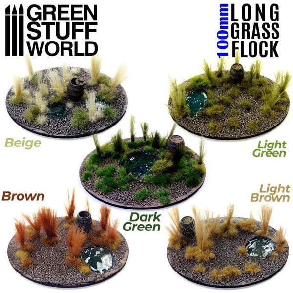Long grass flock from Green Stuff World is realistic and of high-quality Model Realistic Field Grass. Designed to decorate the bases of your miniatures of your scenery creating model tall grassweeds, and other wild grasses found in woodlandswetlandsprairies, and other places in nature.