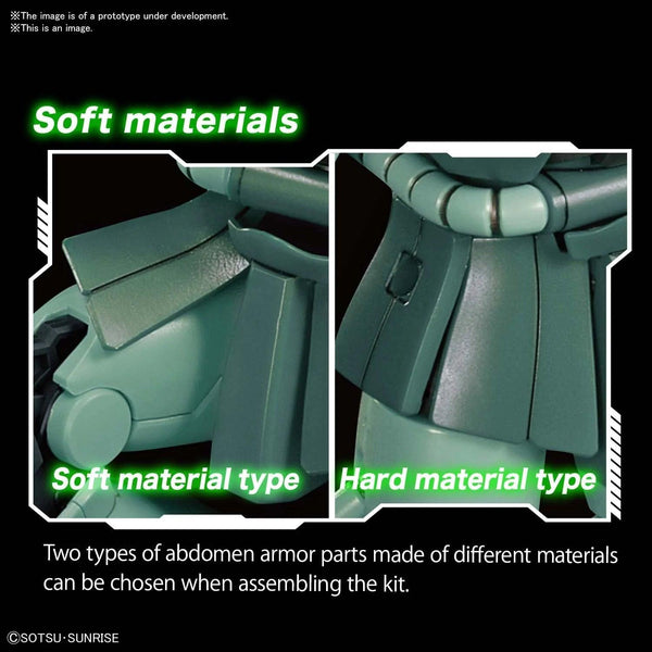 Based on the Mobile Suit Gundam anime series, this MS-06 Zaku II model kit is in 1/144 scale and becomes a fully articulated figure once built.