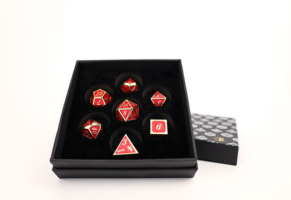The dice comes in a giftable box with a unique design, with foam divets to keep the dice secure and safe.