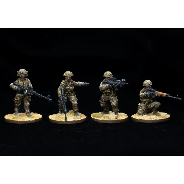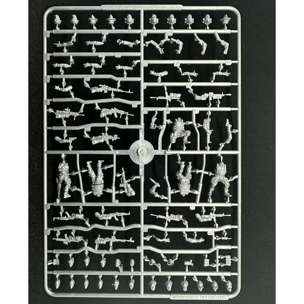 This hard plastic box set includes enough parts to build 24 28mm figures. There are six unique bodies, enough arms to make all of them fleeing, enough arms to have 1/2 the box holding signs, and a huge mix of weapon arms. Weapon arms include: broken bottles, baseball bats, cricket bats, machetes, double barreled shotguns, semi-auto shotguns, pump shotguns, AR-15s, automatic pistols and revolvers, Uzis, and hunting/sniper rifles. And to top it off there are 55 unique heads with a total of 220 heads in the box!
