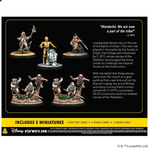He is joined by Wicket as a Secondary Unit and two Ewok Trappers wielding spears as a Supporting Unit. Rounding out the pack are R2-D2 and C-3PO, who join together to form another Secondary Unit option.