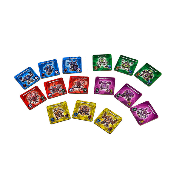 When the mechanical carnage dies down, and there are five or fewer Mechs in the Arena, the round ends. You compare your betting cards, determine your points, and then get ready for the next round by resetting the Mechs, and determining your bets. After three rounds, add up all of your points, and whoever has the most points is the winner!