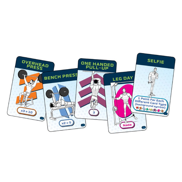 After two rounds, everyone's full collection of cards is revealed and scored based on a variety of scoring methods. The player with the fewest "Leg Day" exercises is eliminated from the competition. After that, the player with the most points wins!
