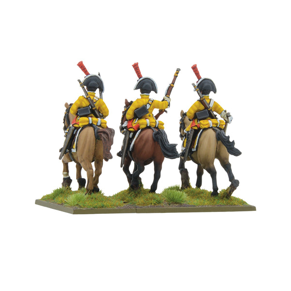 In their lemon-yellow uniforms topped with plumed bicornes, the Spanish dragoons cut an imposing sight on the tabletop battlefield. Equipped with long, straight swords, a brace of pistols, and a short musket each, they make for an excellent, versatile cavalry unit in games of Black Powder, whether standing against the French alone or as part of an allied force!