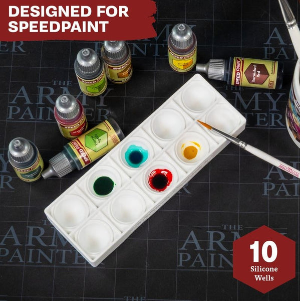 The Speed Palette makes fast painting even more fun. It's not only a tool; it's a sensory experience. Crafted from flexible silicone, it comes with 10 deep wells designed for your favourite paints (it especially works well with Speedpaints) and keeps them from drying out while you create. Cleanup is as quick as flexing and flicking, bringing a tactile sense of play to every session.