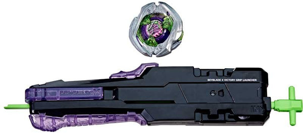 Experience Beyblade X, the next generation of Beyblade stadiums, launchers, and tops! The Victory Grip Launcher Set includes a right-spin launcher with a 10'' (25cm) ripcord and customizable rubber grips. It comes with the Saber Samurai 2-70L Right-Spin Attack Type top, which works with the X-Celerator Gear System to level up your game and prove it in battle!