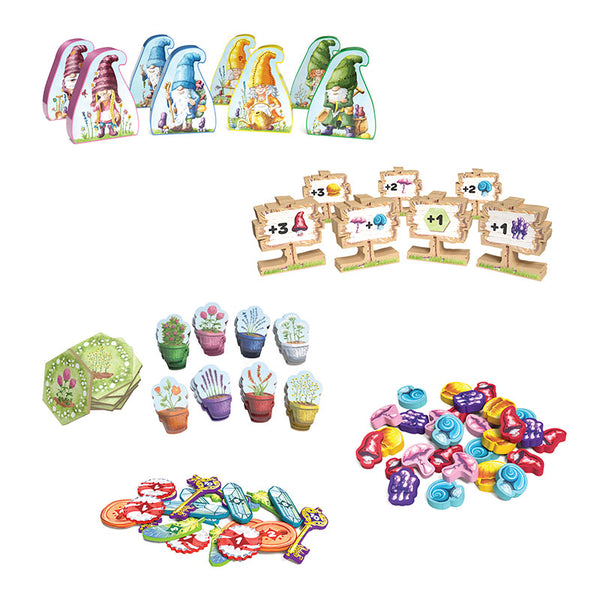 Since the beginning of time, gnomes have been the humble caretakers of nature. In secret they emerge from their underground homes to maintain meticulous rings of mushrooms known to the humanfolk as “fairy rings.” But the work must be done quickly, because as soon as a mushroom path is finished, the mushrooms are ready for picking. Who will be the cleverest gnome and harvest the most mushrooms by the end of the season?