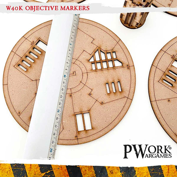 Designed specifically for Warhammer 40K 10th Edition , these 3mm MDF circular markers accurately reproduce the areas required by the rules, allowing you to verify dominance at a glance, without the need for constant measuring.