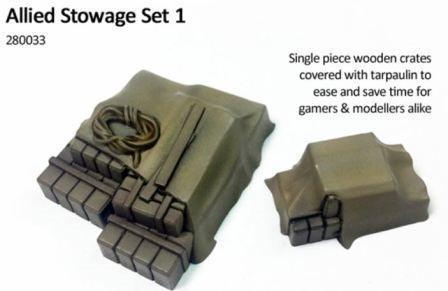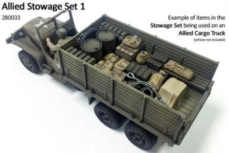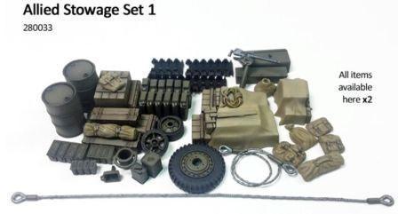 Vehicles in the field acquire all kinds of extra stowage because, let's face it, would you carry your pack when you could stick it on a vehicle? Not to mention spare parts, extra fuel and ammo and tank track sections. This kit allows you to add that lived in and used look to your Allied vehicles. It contains;