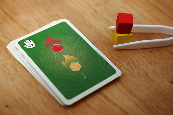 Each turn players will draw a card from the campfire deck. The card will instruct them to place on the campfire a log, a fire block or any combination of the two (or more) in various orientations. Players use tweezers to "Play with fire" in a shared pool, however, once all pieces have been put together and are off the ground the player must carefully place this on the campfire!