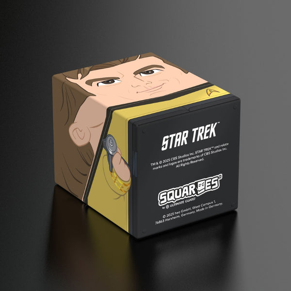 Collectible box for storing TCG decks, tabletop gaming accessories, and/or collectibles. The Captain Kirk Squaroe from the Star Trek: The Original Series edition holds up to 100 cards in double protective sleeves if used as a deck box. Squaroes are made from 78% renewable resources and fit perfectly into the separately available Collectors Case (available here).