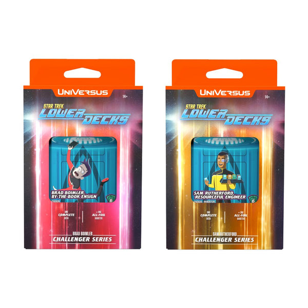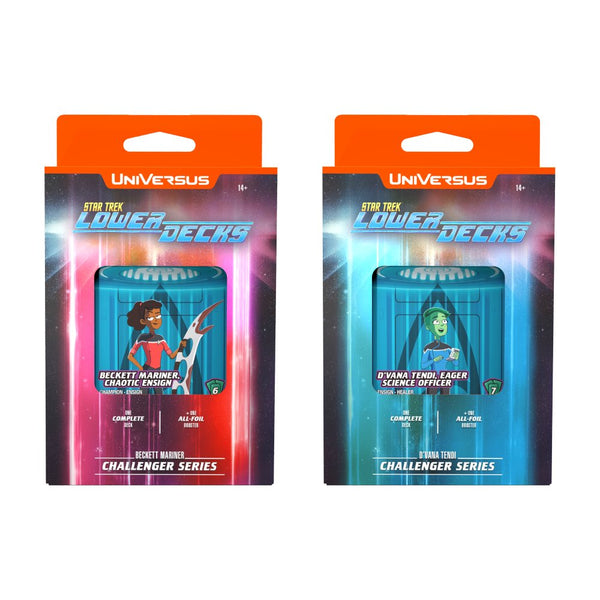 Join the lower-deck crew with the Star Trek – Lower Decks Challenger Series. These 60-card decks are ready to play right out of the box, featuring characters from the U.S.S. Cerritos: Mariner, Boimler, Tendi, and Rutherford.